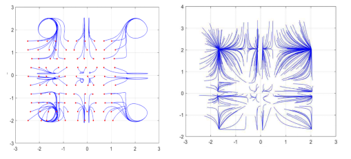 貴大新聞網(wǎng)訊(數(shù)學(xué)與統(tǒng)計(jì)學(xué)院)近日,國家天元數(shù)學(xué)西南中心貴州基地/貴州省數(shù)據(jù)驅(qū)動(dòng)建模學(xué)習(xí)與優(yōu)化創(chuàng)新人才團(tuán)隊(duì)、貴州大學(xué)數(shù)學(xué)與統(tǒng)計(jì)學(xué)院王錦榮教授團(tuán)隊(duì)教師歐世勤以第一作者在計(jì)算機(jī)領(lǐng)域頂級(jí)期刊 IEEE Transactions on Fuzzy Systems 等期刊發(fā)表神經(jīng)網(wǎng)絡(luò)系列學(xué)術(shù)論文,為相關(guān)領(lǐng)域的研究提供了新的理論和方法。針對(duì)模糊神經(jīng)網(wǎng)絡(luò),給出了狀態(tài)依賴切換機(jī)制構(gòu)建了狀態(tài)依賴切換模糊神經(jīng)網(wǎng)絡(luò)模型,探討了系統(tǒng)參數(shù)在狀態(tài)依賴切換下多穩(wěn)定性和固定時(shí)間多穩(wěn)定性問題,旨在為神經(jīng)網(wǎng)絡(luò)在聯(lián)想記憶中的應(yīng)用提供理論依據(jù)。研究結(jié)果表明狀態(tài)依賴切換機(jī)制會(huì)導(dǎo)致系統(tǒng)的平衡態(tài)增加,使之在聯(lián)想記憶應(yīng)用中比傳統(tǒng)未切換的神經(jīng)網(wǎng)絡(luò)模型有更大的儲(chǔ)存容量。進(jìn)一步考慮系統(tǒng)參數(shù)具有概周期性,得到了具有高斯激活函數(shù)的元切換模糊神經(jīng)網(wǎng)絡(luò)具有個(gè)穩(wěn)定的概周期解,下圖分別給出了具有高斯激活函數(shù)的2元切換神經(jīng)網(wǎng)絡(luò)在時(shí)變概周期參數(shù)與非時(shí)變參數(shù)下的相圖。此外,在系統(tǒng)實(shí)現(xiàn)多穩(wěn)態(tài)的基礎(chǔ)上,提出了多控制器組合控制策略以實(shí)現(xiàn)多個(gè)平衡態(tài)的固定時(shí)間收斂,建立了固定時(shí)間多概周期性、多周期性和多穩(wěn)定性的判定準(zhǔn)則,相關(guān)結(jié)果已投稿且被(IEEE Transact